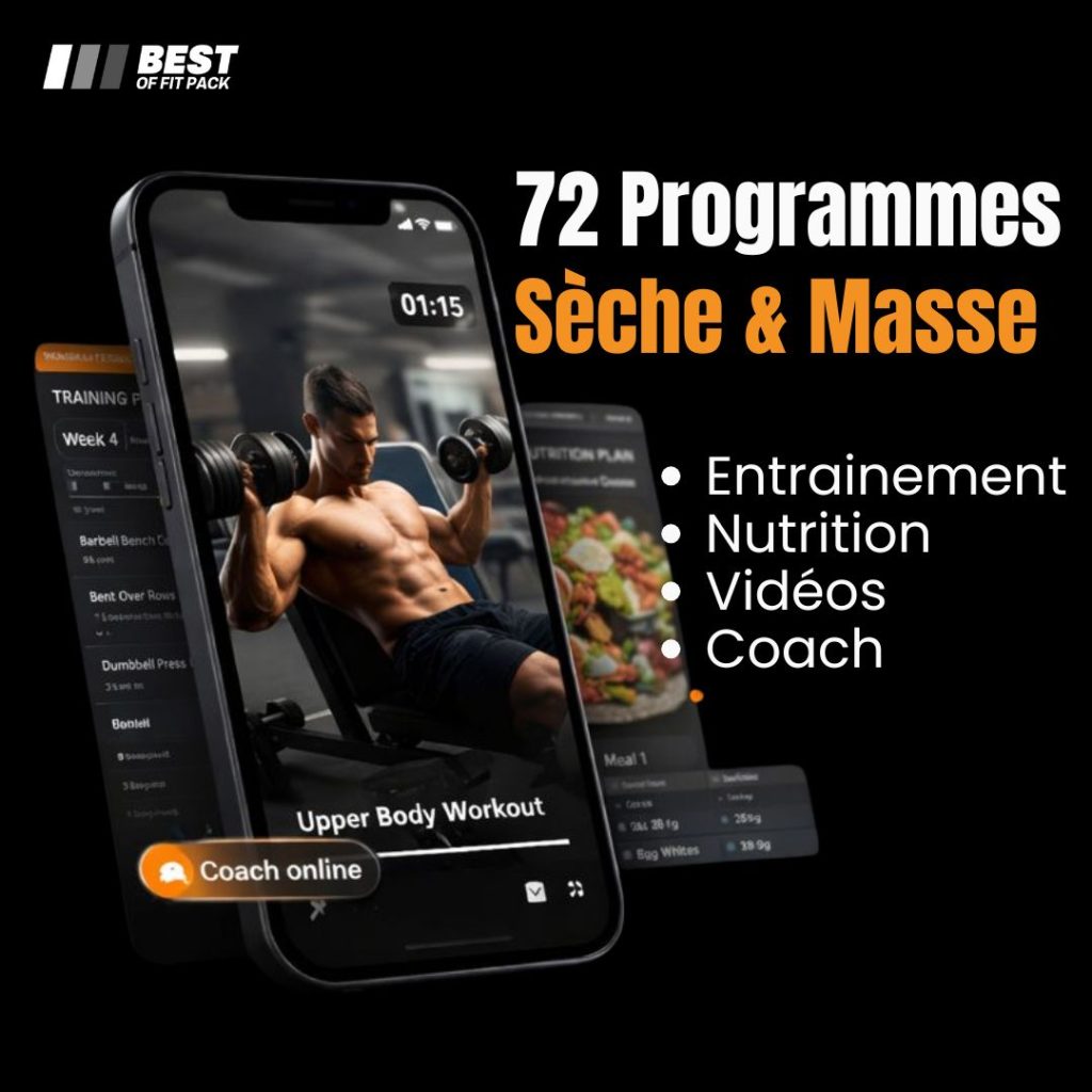 72 PROGRAMMES SÈCHE & PRISE DE MASSE + GUIDE NUTRITION + COACH 6j/7