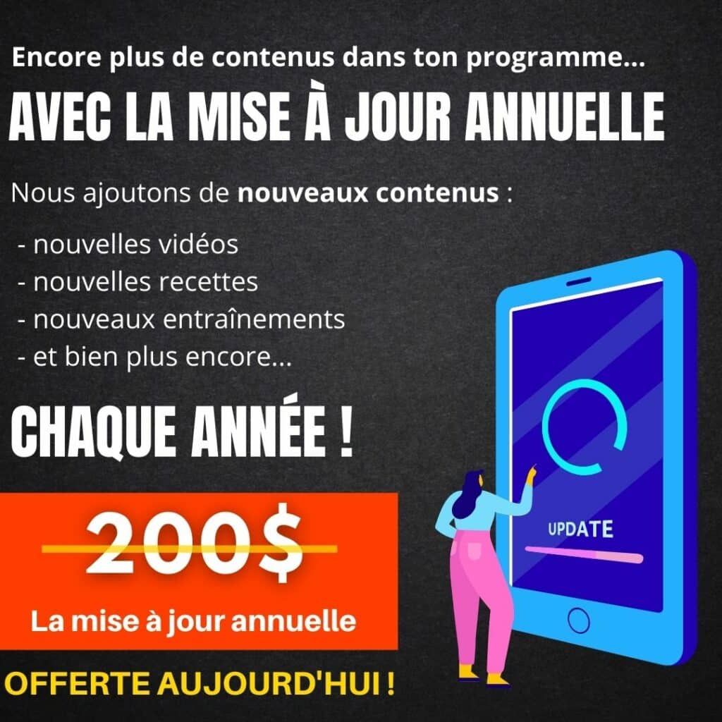 Aucune inquiétude, le programme a été conçu pour que tu puisses faire les choses progressivement et te laisser le temps de prendre confiance en ta progression. Les résultats rapides du premier mois te motiveront à continuer ^^ et notre module « mental invincible » t’aidera à te forger un mindset de gagnant. De plus si tu bénéficies de l’offre d’assistance coaching offerte, tu peux compter sur nos coachs pour te répondre et t’aider en cas de baisse de régime 😉